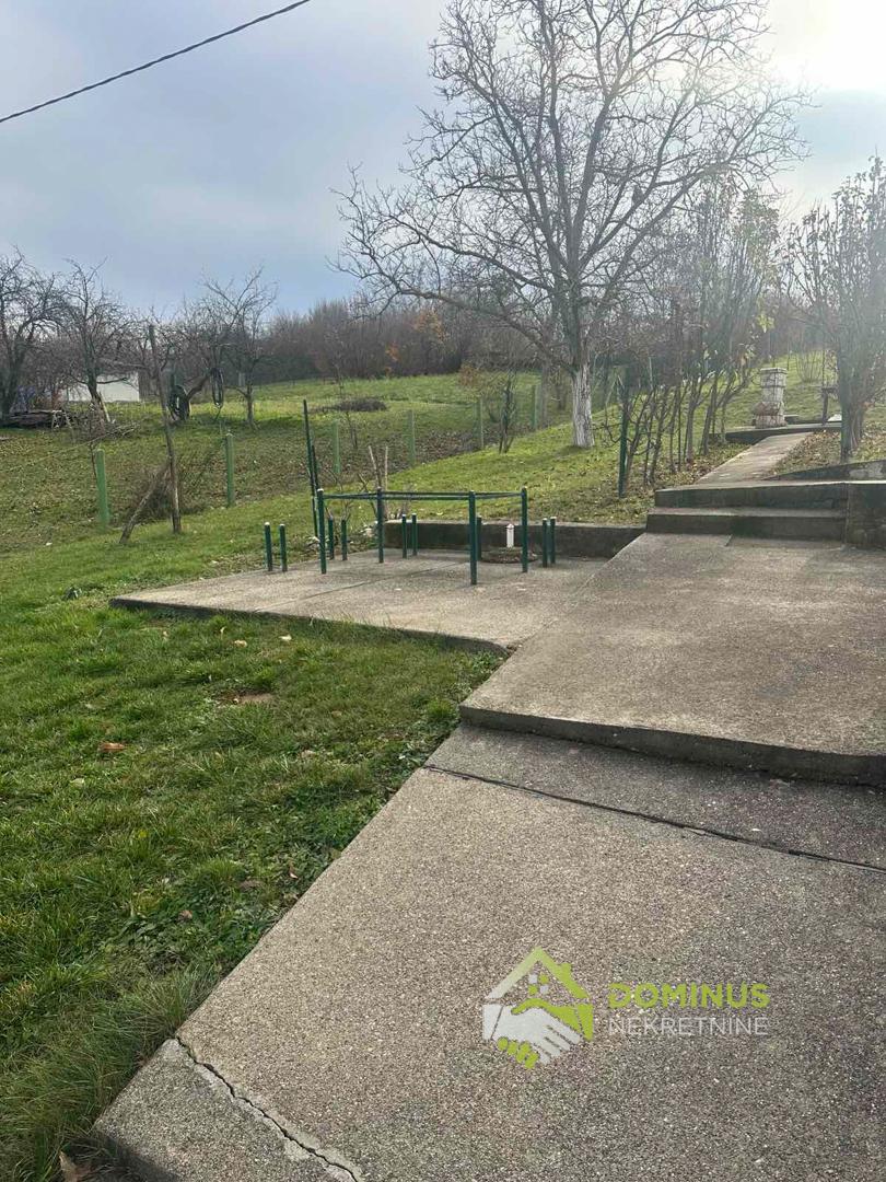 Sprat: predsoblje,kupatilo i dve spavaće sobe,obe sobe imaju izlaz na terasu sa koje se prostire pogled na pejzaže Šumadije. Kuća se nalazi na 20ari građevinskog placa,na kom su zasađene razne vrste voća.
