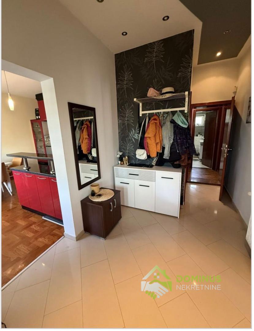 Sastoji se od: ulaznog hodnika,kuhinje sa trpezarijom i velike dnevne sobe,wc-a i manjeg hodnika koji odvaja spavaći deo
