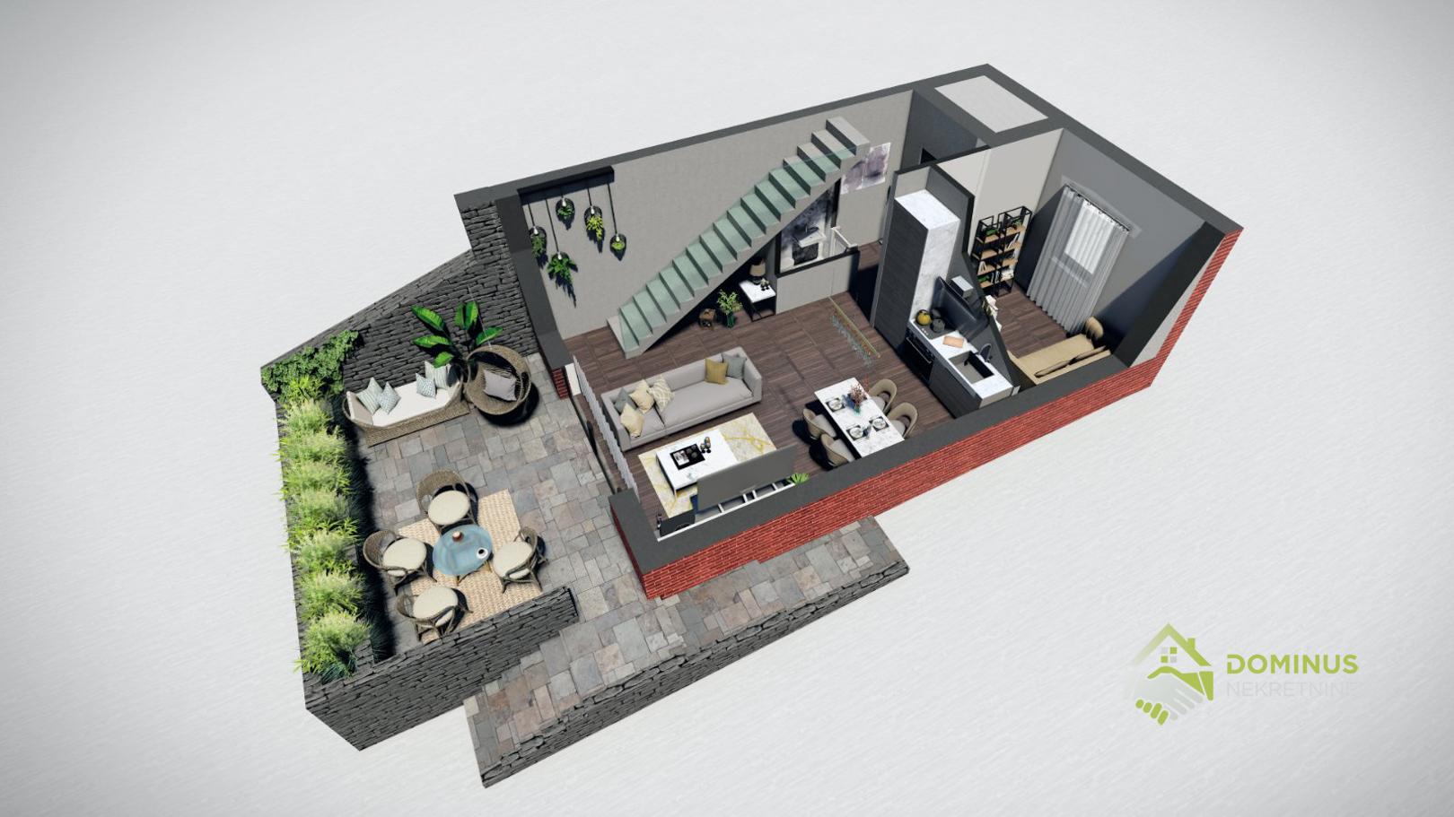 Kuća se sastoji od suterena, prizemlja, sprata i potkrovlja. U…